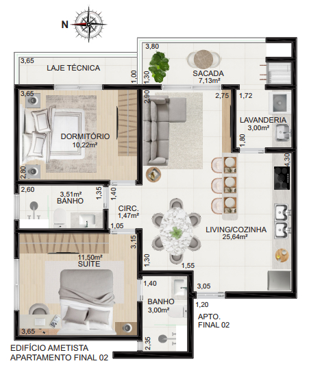 Residencial Ametista - Universitário - Santa Cruz do Sul/RSApartamento 2 dormitórios (1 suíte) no Bairro Universitário