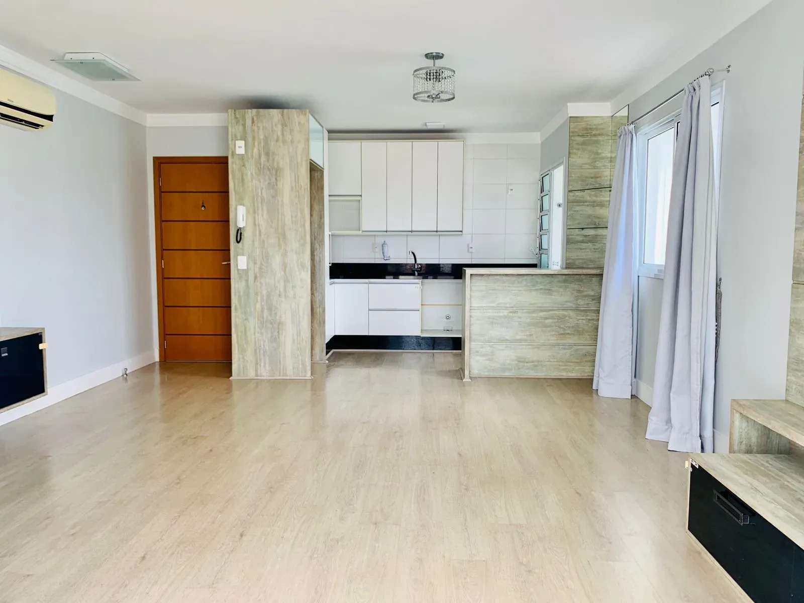 -Ao entrar, você será recebido por uma sala de estar que se integra perfeitamente à cozinha aberta