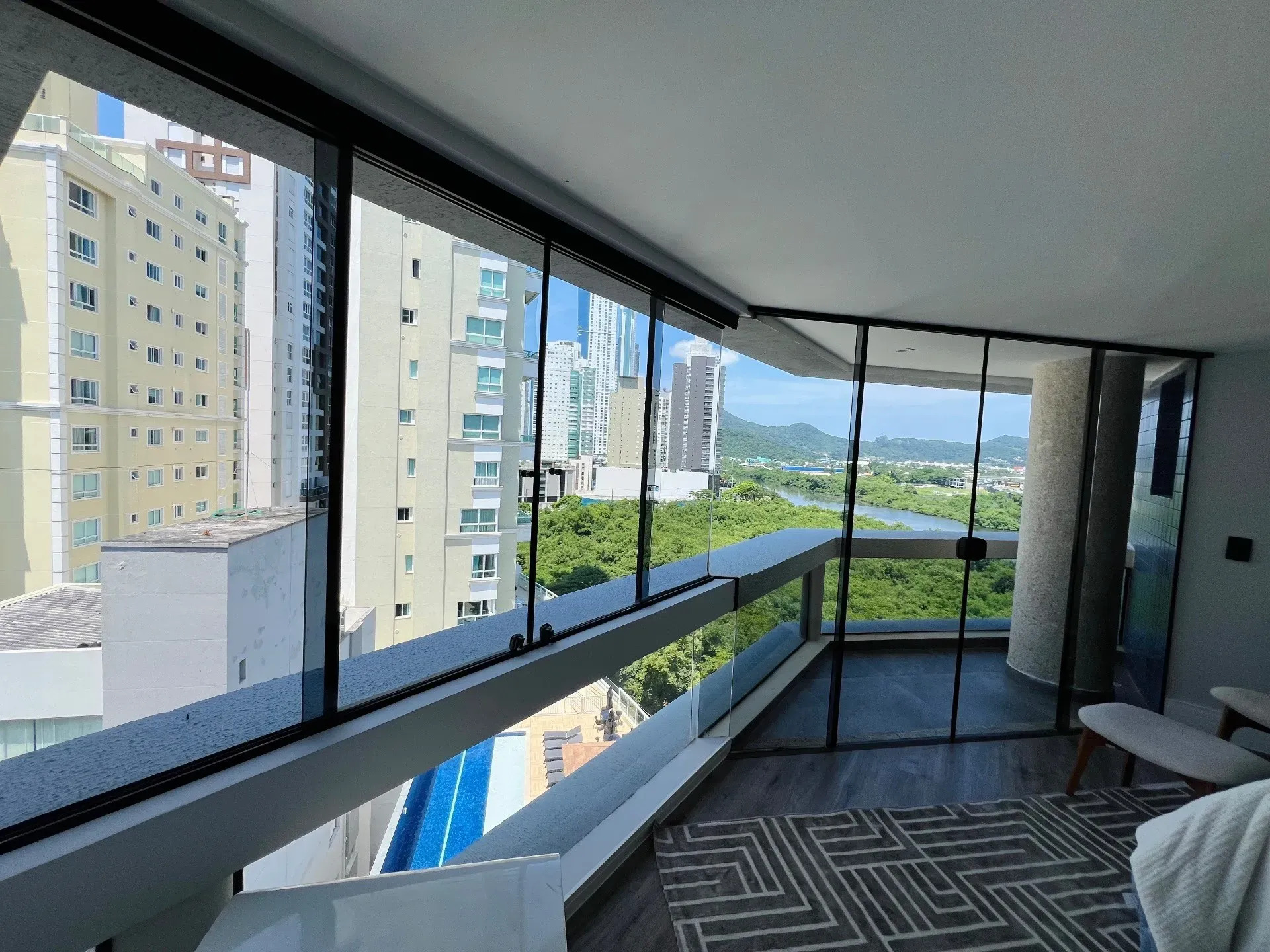 Cobertura tríplex com 343m², muito bem distribuídos, mobiliada, equipada e decorada, um dos pontos positivos, com vista, e vista para rio Camboriú, sendo ele o principal acesso das marinas de Balneário Camboriú.