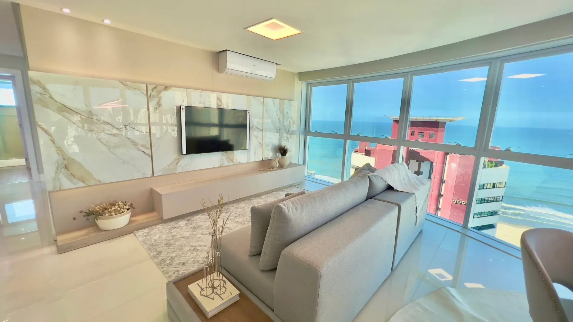 Imóvel conta com 131m² de área privativa, vista mar, finamente mobiliado, com 4 dormitórios sendo 2 suíte, mais 3 vagas.