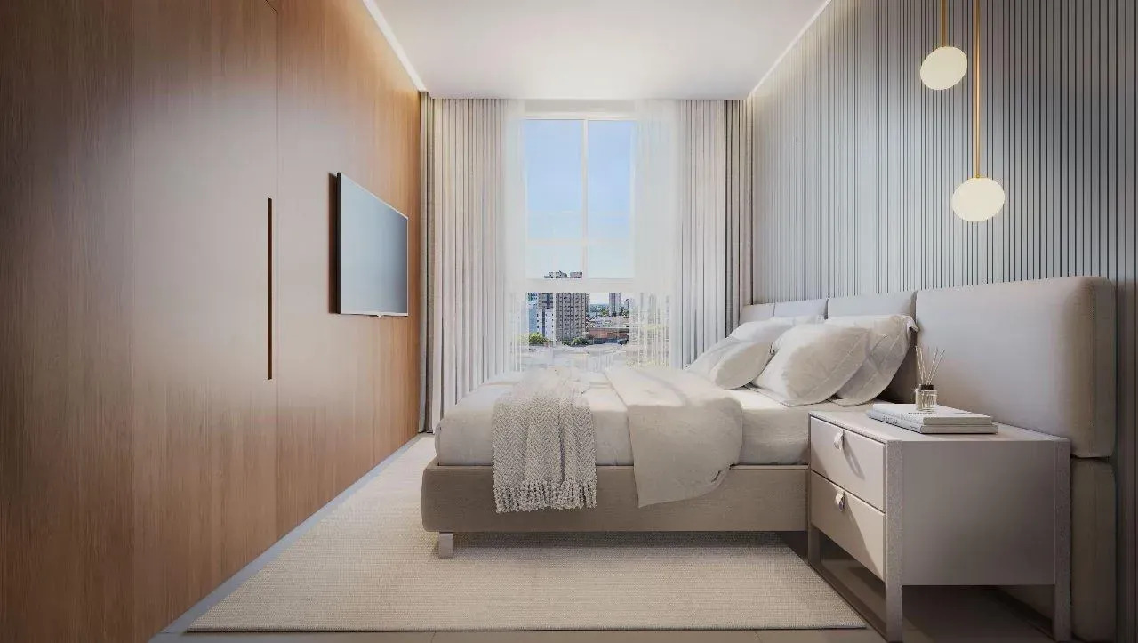 - Quartos com persianas embutidas e vidros acústicos