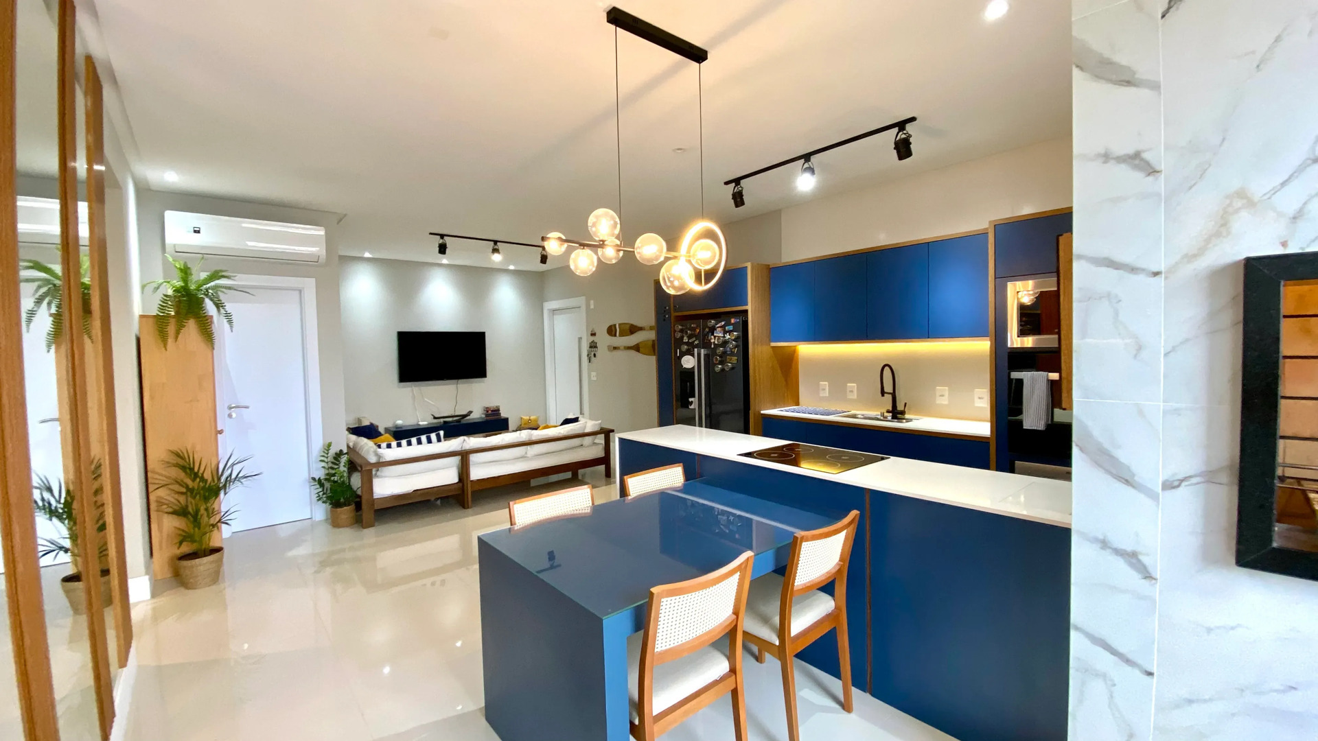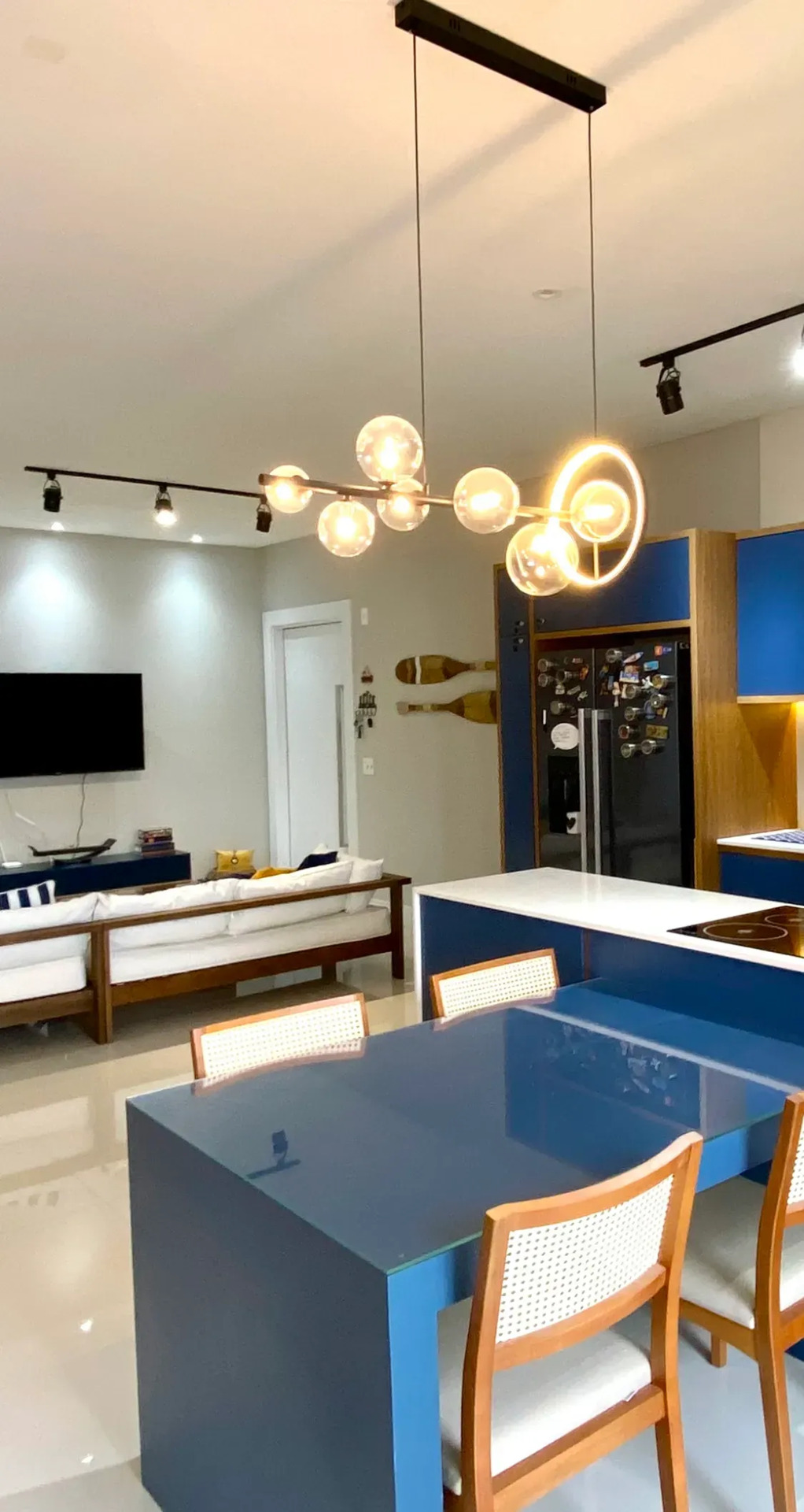 - Forno a gás, fogão de indução, lava louça, geladeira side by side com filtro.