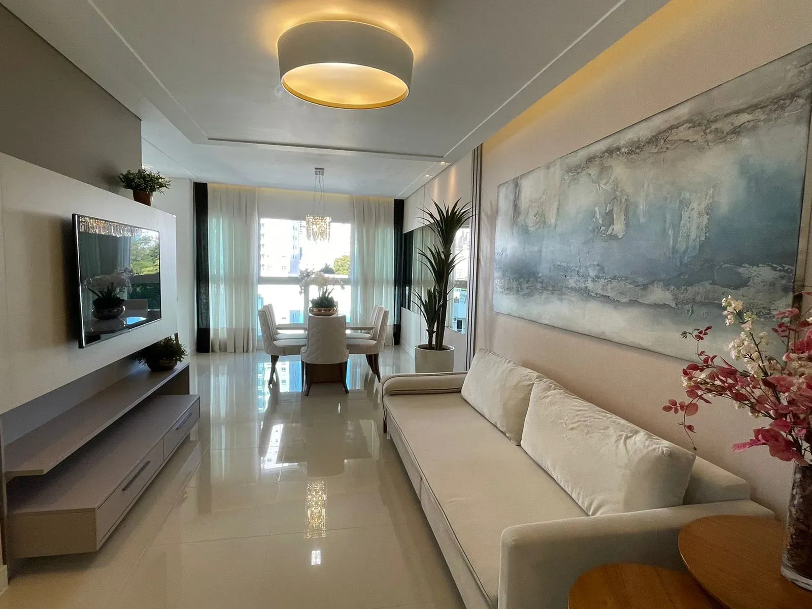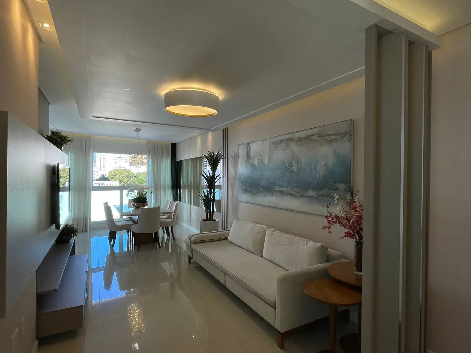 - Living integrado com a área gourmet