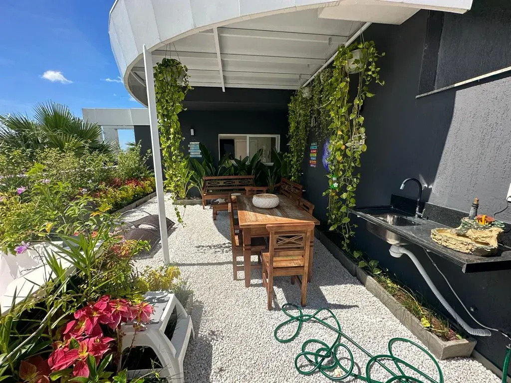 - Amplo terraço com churrasqueira à carvão e jacuzzi