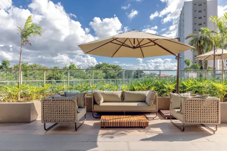 A estrutura de lazer com mais de 7.600m2 de área, apresenta um conceito diferenciado ao conectar 3 grandes espaços de lazer através de uma passarela suspensa.