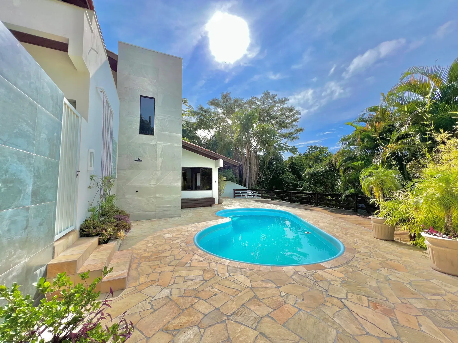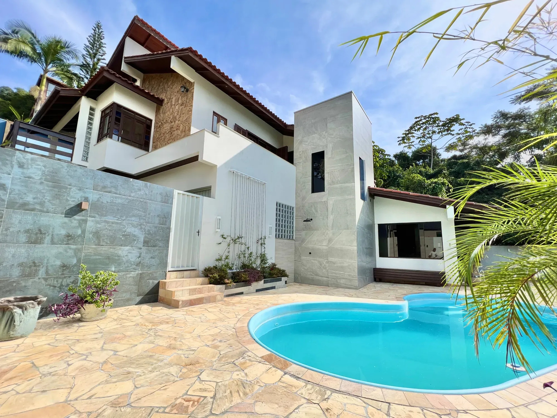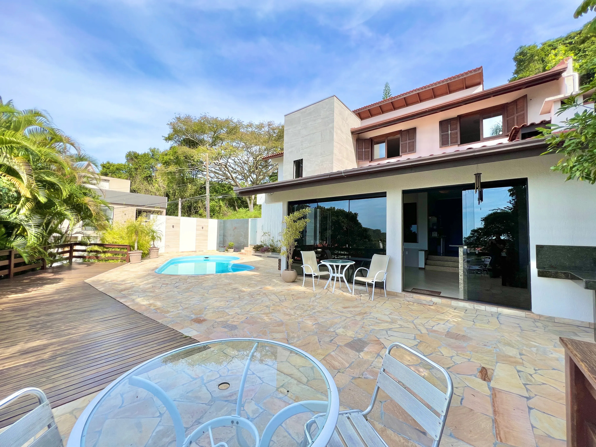 Casa em Cabeçudas com piscina e vista para o mar.