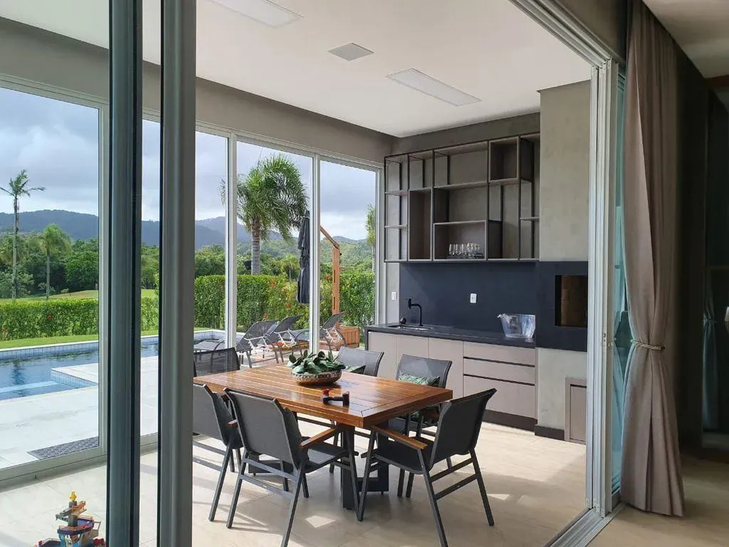 - Estar, jantar e cozinha com pé-direito alto e integrados,