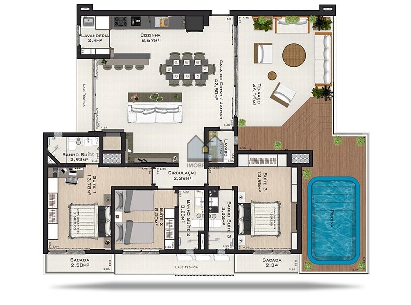 Apartamento de 3 dormitórios (3 suítes) com terraço, deck e piscina no Centro de Santa Cruz do Sul