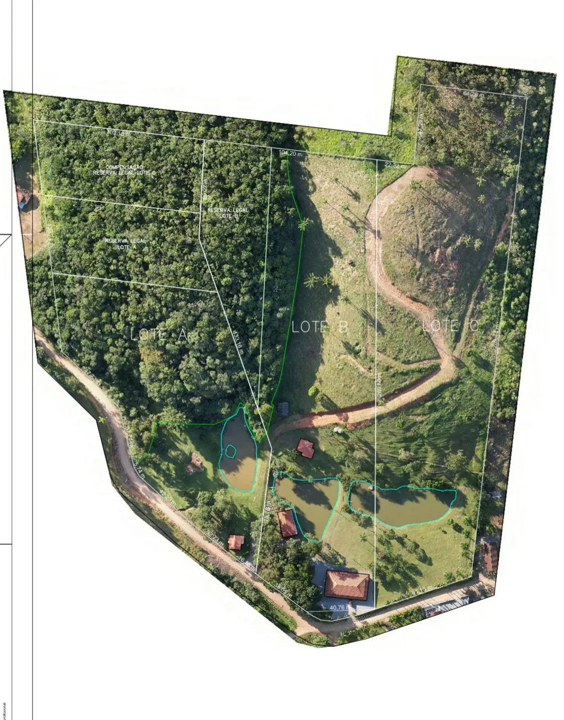 A propriedade rural possui 3 tanques onde são criadas tilápias e um reserva legal.
